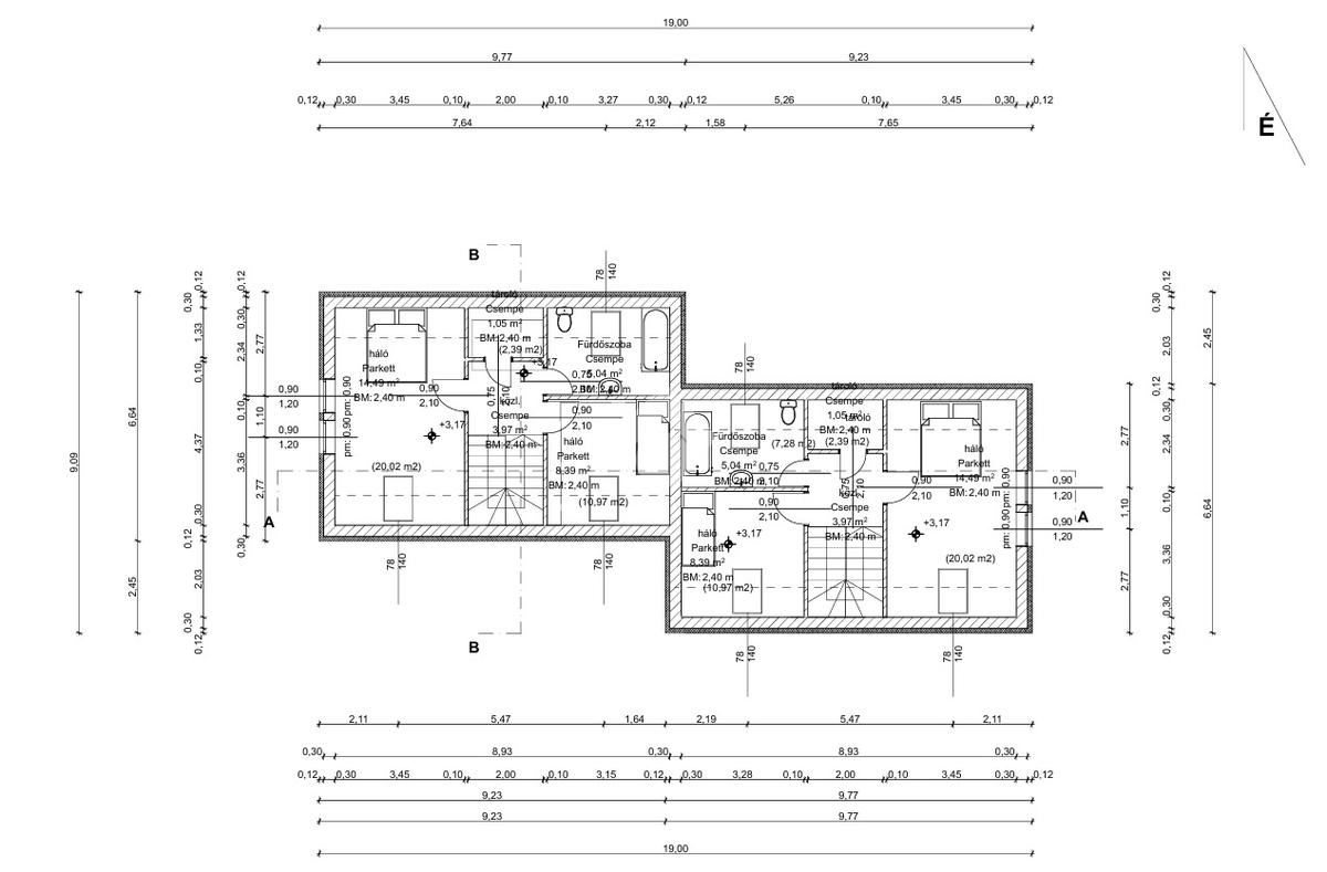 -A födém felett 25 cm vastag kőzetgyapot hőszigetelés került elhelyezésre, a tetőfedést esztétikus és tartós betoncserép biztosítja.
