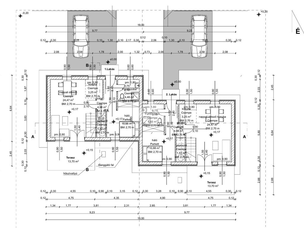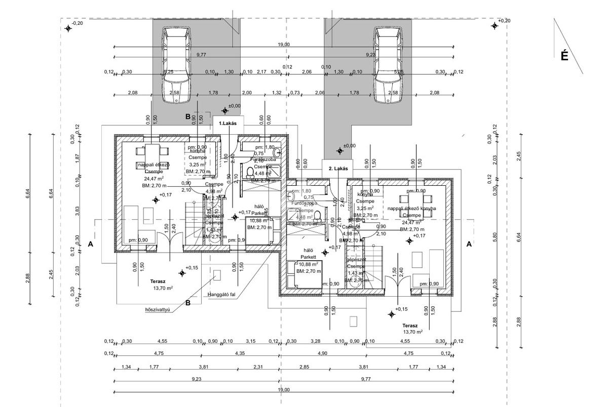 -Az ikerház felek 30 cm vastagságú Porotherm téglából épülnek. A homlokzatot 15 cm vastagságú Dryvit hőszigetelés fedi.